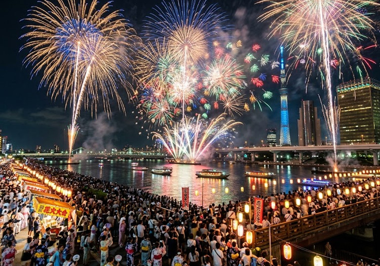 花火師が競い合うコンクールが有名な隅田川の花火大会。毎年、テレビ放映されていたりするので、知っている人も多いと思います。
