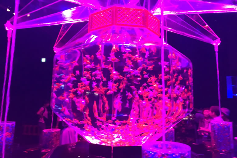 「江戸・金魚の涼」をテーマにした幻想的な空間が広がっています。この日も多くの人でにぎわっていました。