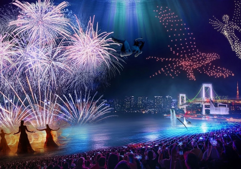 2026年公演は「次元突破」をテーマに、過去最大規模のスケールで展開されます。約1時間半のストーリーに合わせ、12,000発の花火と800機のドローン、最新のレーザーや音響がシンクロする圧巻のショーが披露されます。