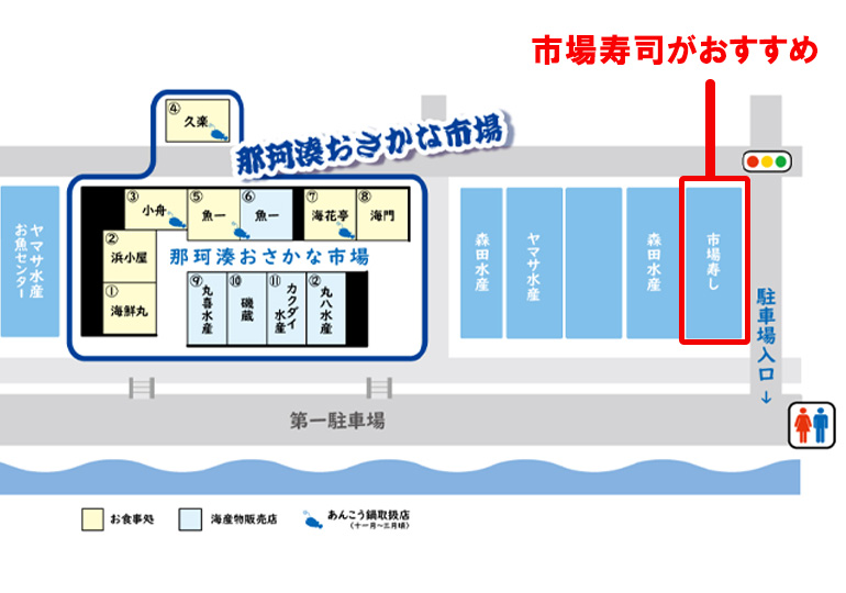 右の方に、「市場寿司」というお店があります。